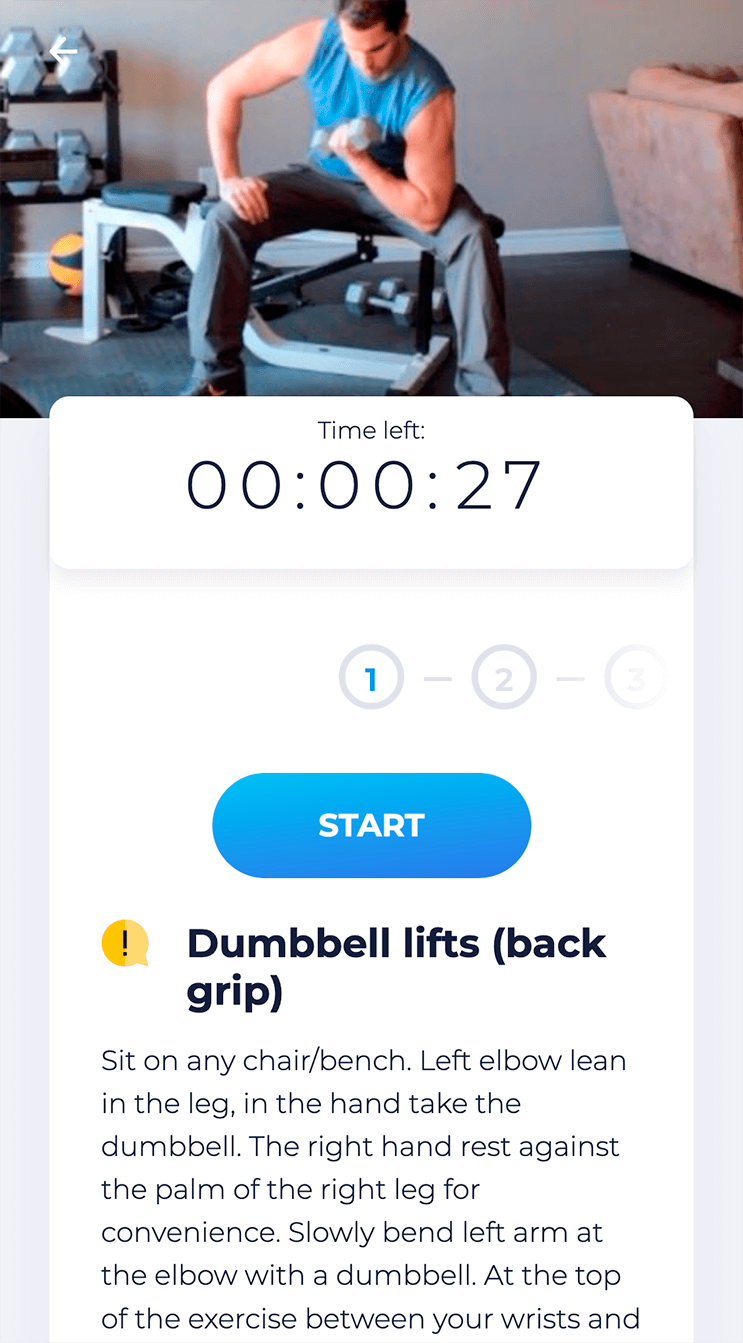 أثناء التواجد في وضع "التدريب الشخصي" يتم تحقيق التأثير من خلال التلميحات المرئية والصوتية والنصية. على سبيل المثال ، مساعد Mobile.Fitness سوف يوضح لك ليس فقط كيفية القيام بالتمرين بالشكل الصحيح ، وإنما أيضًا متى ستحتاج إلى بذل أقصى جهد ممكن ، ومتى تتوقف وأيضا متى تستريح.